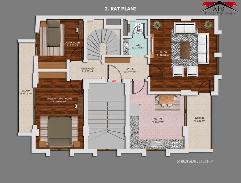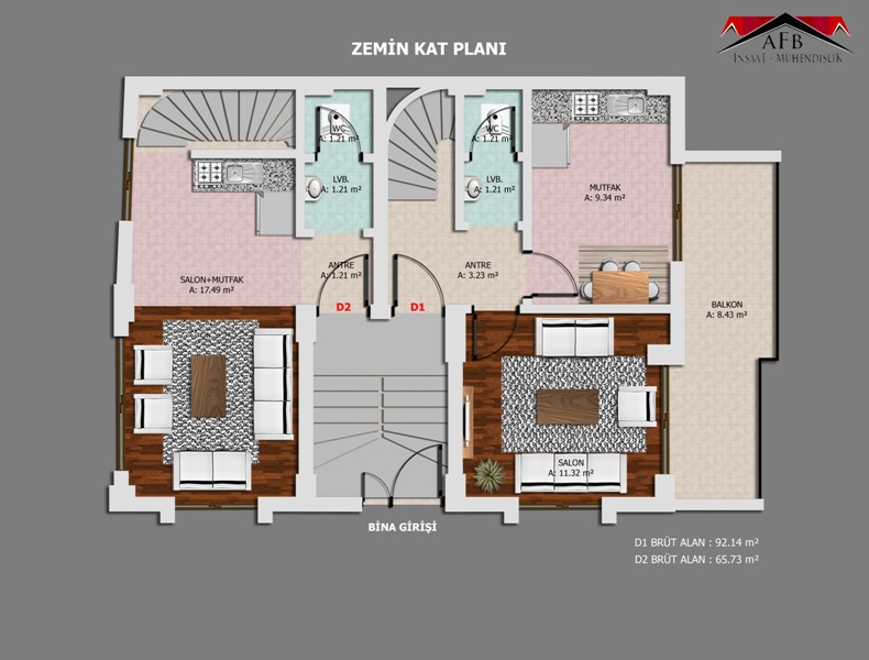 1+1 Daireler .......... 65 m2 2+1 Daireler .......... 92 m2 2+1 Daireler .......... 115 m2 3+1 Daireler .......... 140 m2